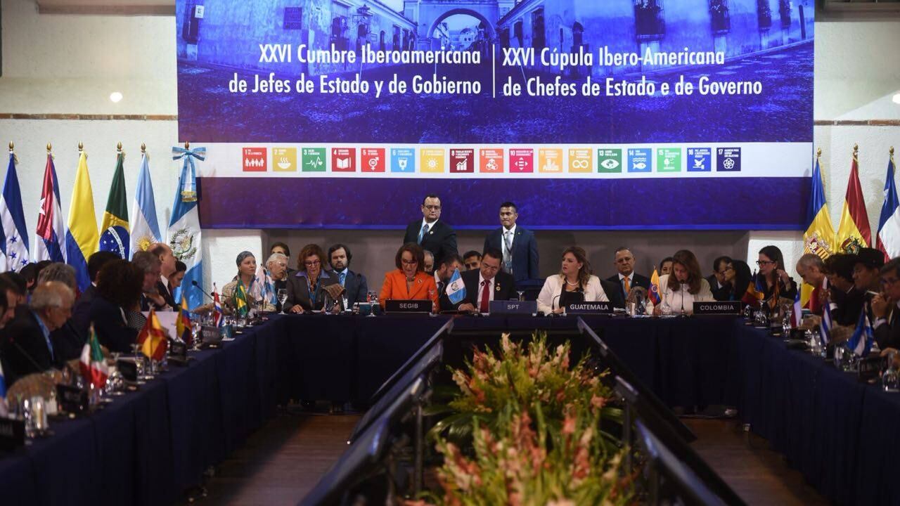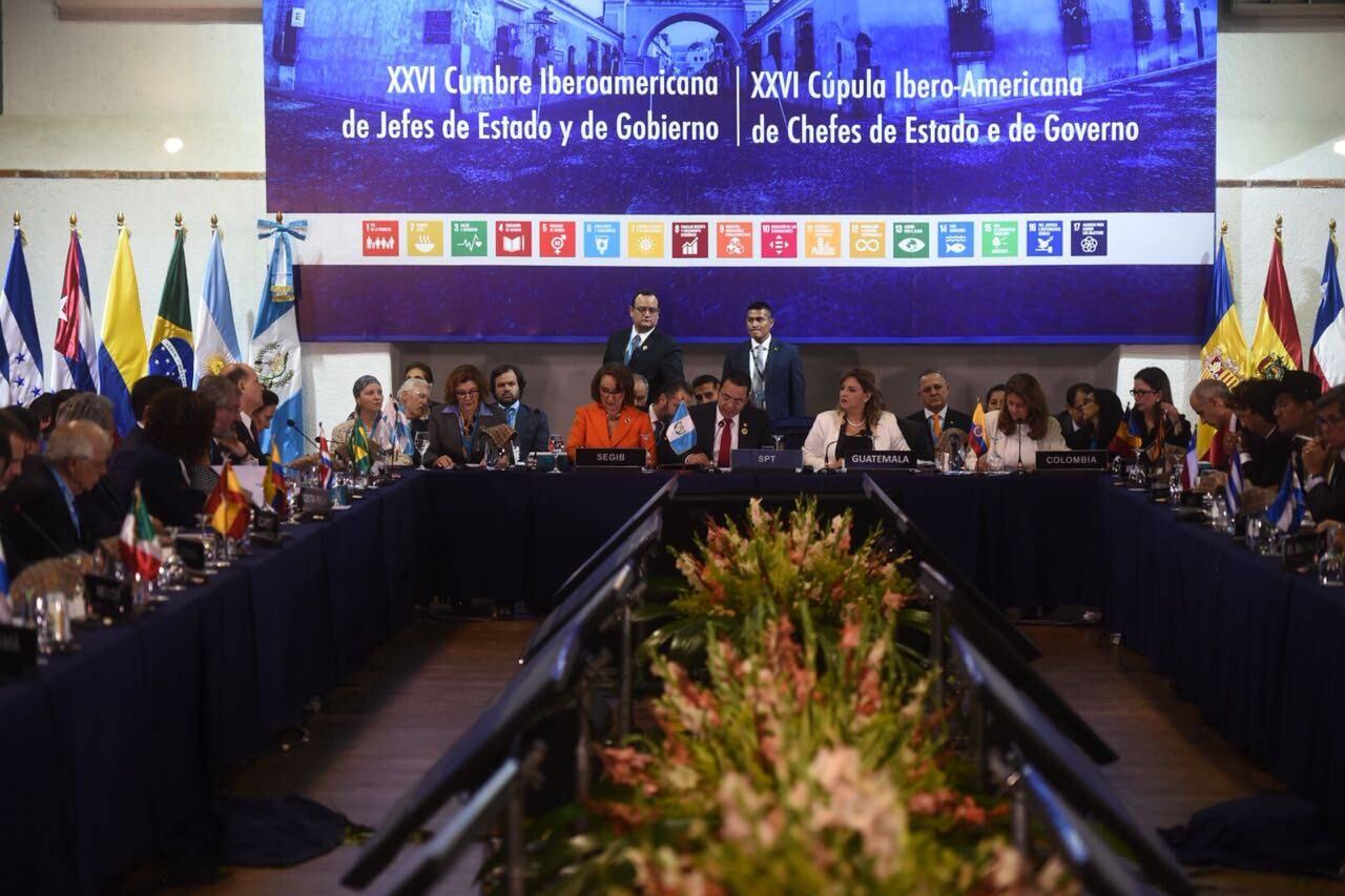 El compromiso por reforzar la cooperación entre las naciones iberoamericanas fue uno de los mayores temas que se abordaron en la Cumbre Iberoamericana, resaltó la titular de la Secretaría General Iberoamericana, Rebeca Grynspan, junto al mandatario anfitrión, Jimmy Morales y del mandatario de Andorra, Antoni Martí.