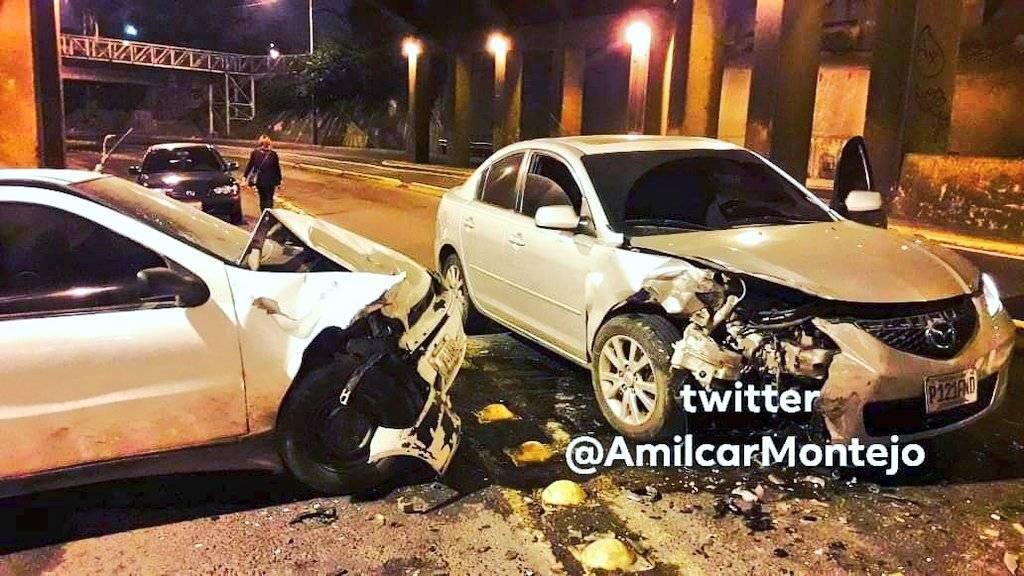 Amílcar Montejo, intendente de la Policía Municipal de Tránsito (PMT) capitalina, informó que dos automóviles chocaron en la vía exclusiva, bajo el puente Las Calaveras, en cercanías de la Plaza Mariachis, zona 3.