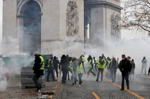 Las fuerzas de seguridad francesas usaron este sábado gases lacrimógenos y un camión equipado con cañón de agua para alejar a los manifestantes, conocidos como "chalecos amarillos", que intentaban forzar un cordón policial en los Campos Elíseos de París, constató una periodista de la AFP.
