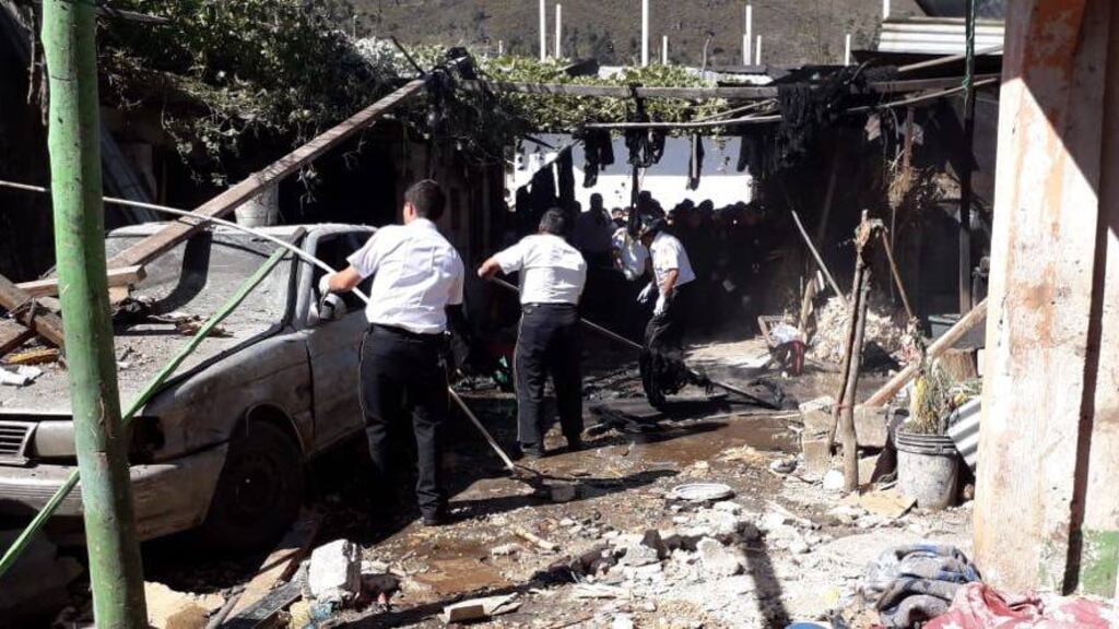 Minutos más tarde, los socorristas constataron que las llamas se iniciaron en una vivienda donde funciona una cohetería, ubicada en el camino hacia el cementerio general de la localidad. A las 15:30 horas, los bomberos continuaban controlando el siniestro para evitar más daños a inmuebles cercanos.