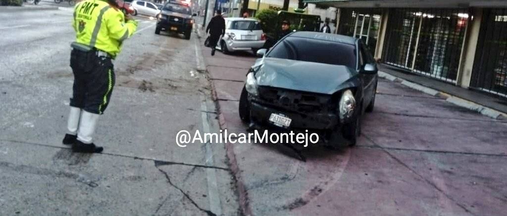 La Policía Municipal de Tránsito (PMT) de la Ciudad de Guatemala señaló que dos vehículos chocaron en la 6ª avenida y 8ª calle de la zona 9.