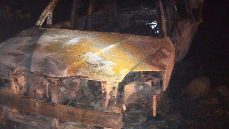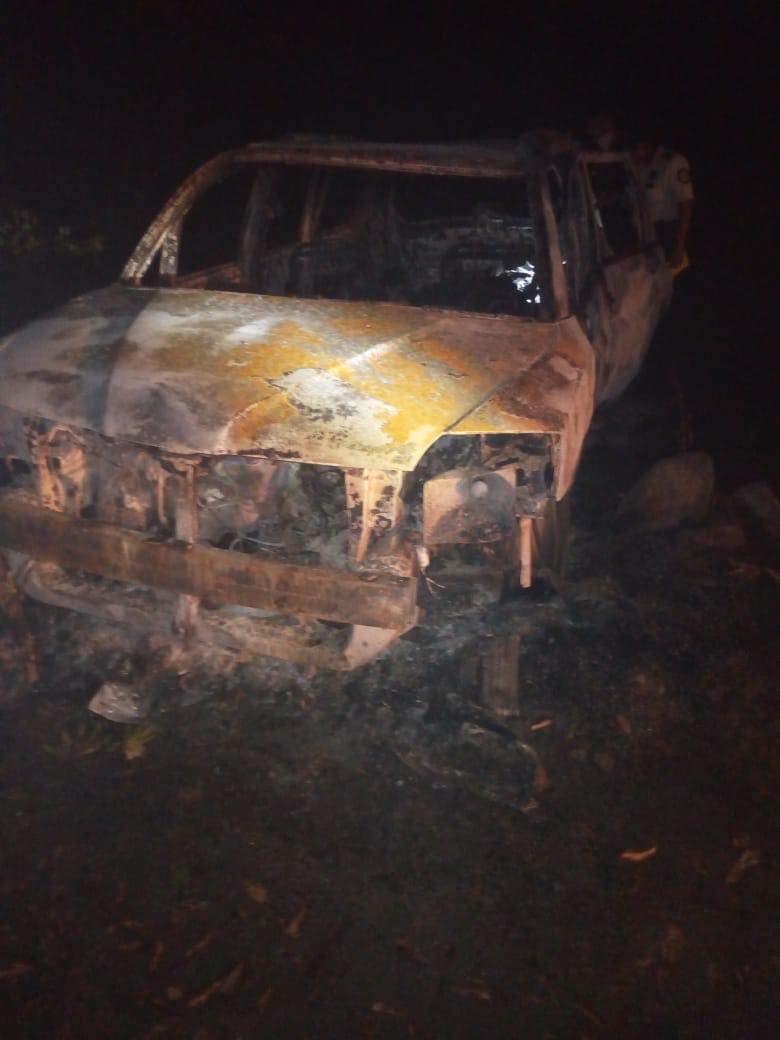 Vecinos alertaron a los cuerpos de socorro sobre la presencia de una camioneta tipo agrícola que se encontraba prendida en llamas en el kilómetro 100.