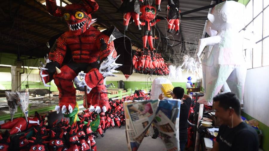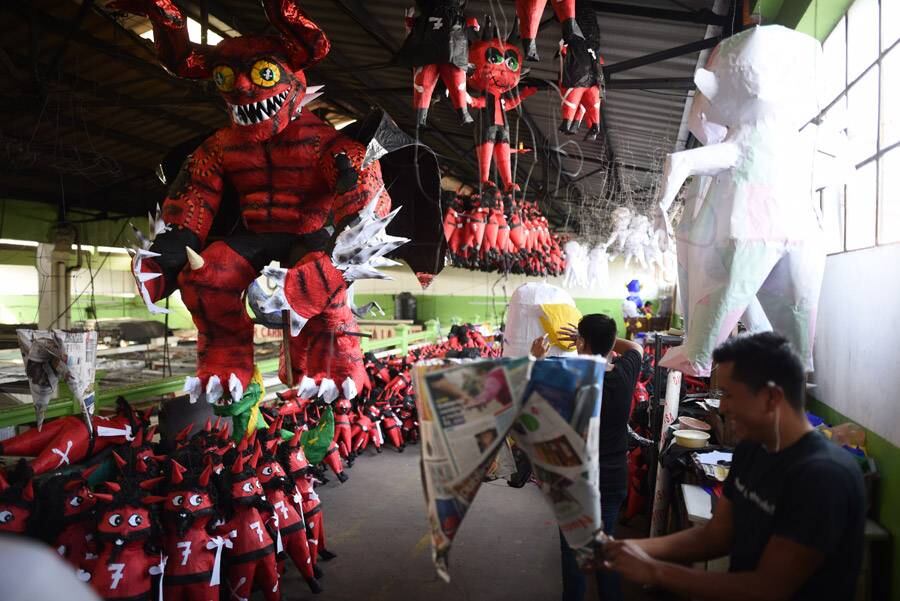 “Trabajamos las piñatas pequeñas, pero ahora nos enfocamos en los pedidos especiales que hemos recibido desde hace algunas semanas”, comenta Marco Antonio, mientras acomoda algunos diablos gigantes en su bodega ubicada en la 9a. calle entre la 12 y la 13 avenidas, en la zona 1.