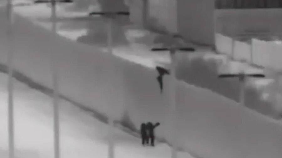 En las imágenes se observa que el individuo deja caer a dos niños pequeños desde la parte superior de la pared, mientras que los otros miembros de la familia ya esperaban abajo.