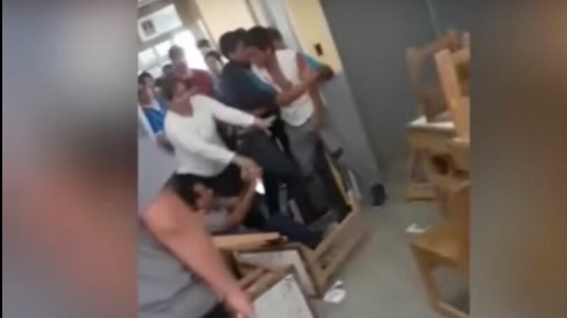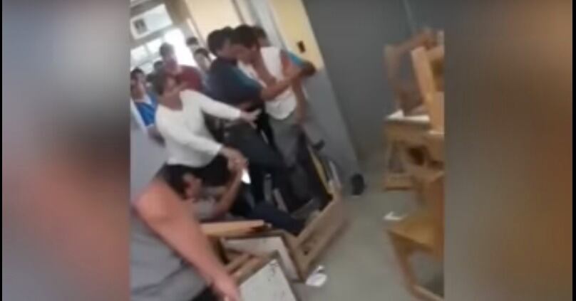 En redes sociales se difundió un video que muestra el momento en el que un estudiante pierde el control y golpea brutalmente a su profesor.
