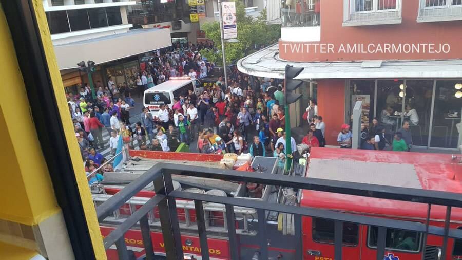 Elementos de la 49 compañía de los Bomberos Voluntarios acudieron al Paseo de la Sexta y 10a. calle de la zona 1 para mitigar un incendio en un local comercial de esa dirección.
