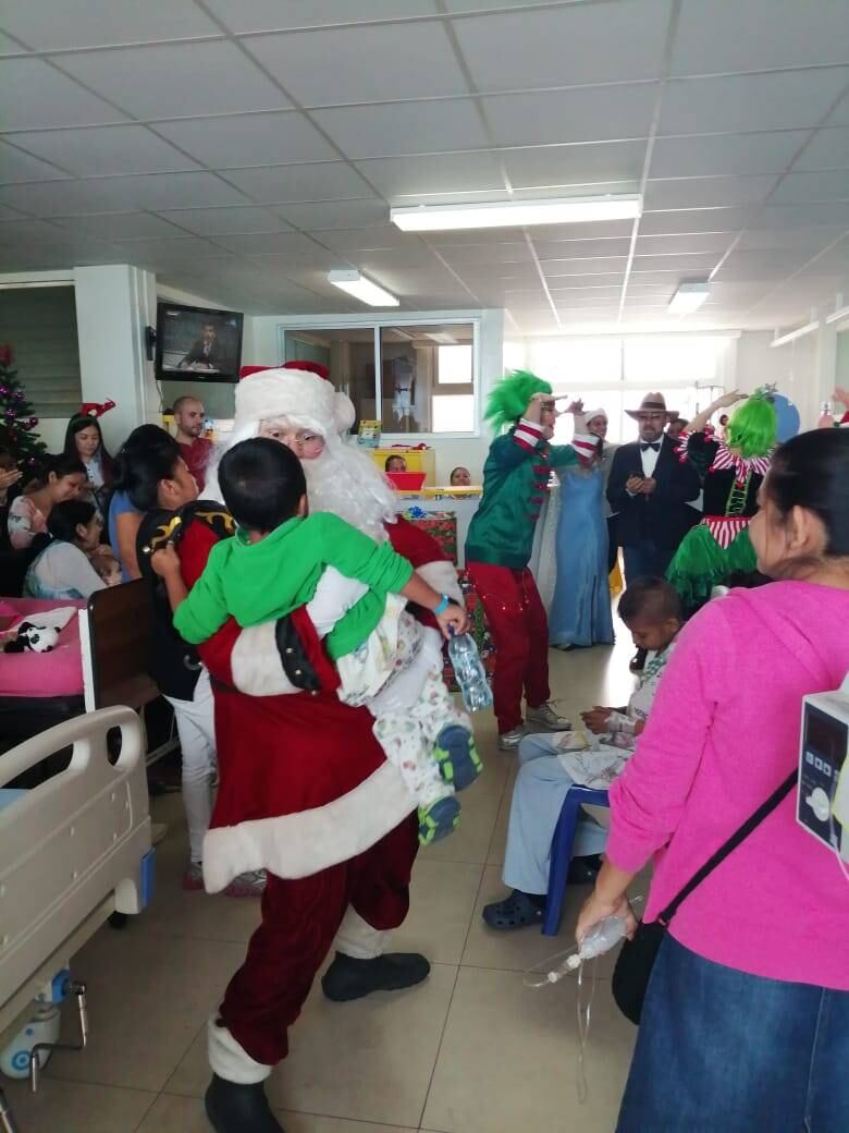 Además de Santa Claus, llegaron duendes y renos, quienes cantaron, bailaron y abrazaron a los pacientes e interactuaron con sus familiares.