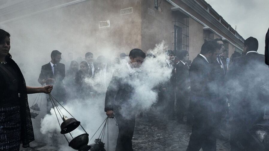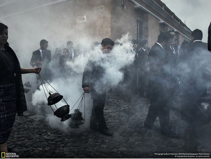 La imagen fue tomada por Buck Holzemer, durante una procesión en las calles empedradas de La Antigua Guatemala.
