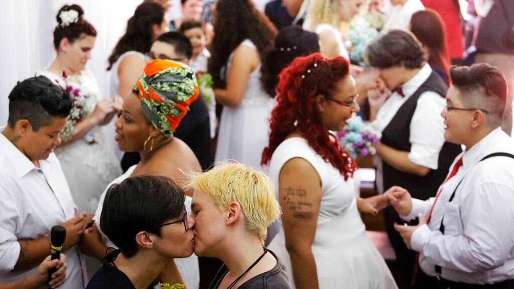 Unas cuarenta parejas contrajeron matrimonio el sábado en Bela Vista, centro de Sao Paulo, en una ceremonia colectiva celebrada en Casa1, una ONG que brinda apoyo a jóvenes LGBT desamparados.