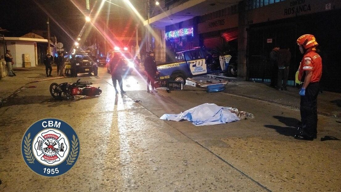 Un accidente de tránsito en la madrugada de este domingo en la 10 calle 9-78 de la zona 1 capitalina alarmó a varios vecinos debido que entre los involucrados está una autopatrulla y una motocicleta, donde una persona de aproximadamente 28 años falleció.