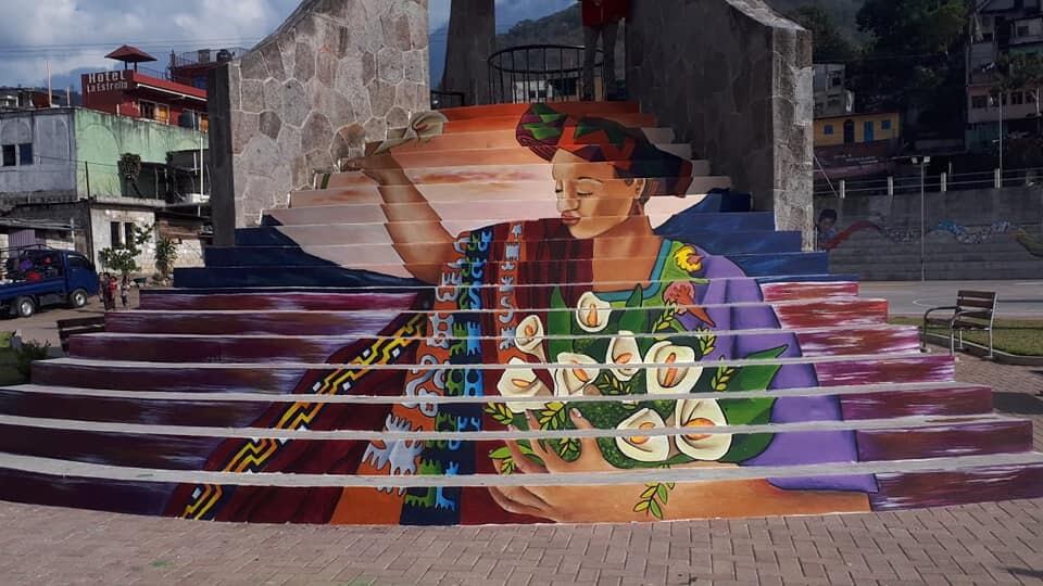 Se trata de Santiago Atitlán, un pequeño municipio a la orilla del lago de Atitlán, el cual fue parte del proyecto "Arte y Turismo, un país con más color".