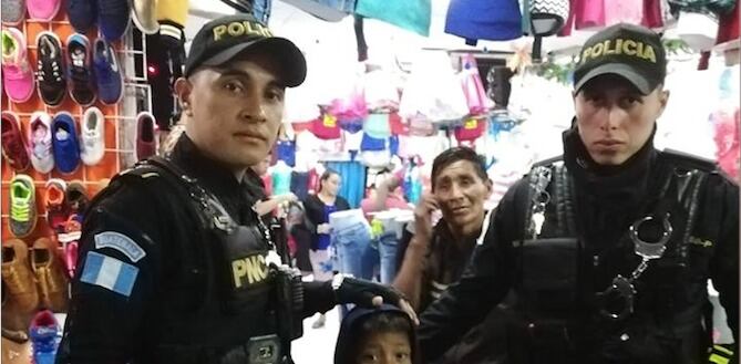 Miles de personas iban y venían haciendo sus compras sin notar al pequeño, fue entonces que dos agentes de la PNC decidieron darle un regalo especial.