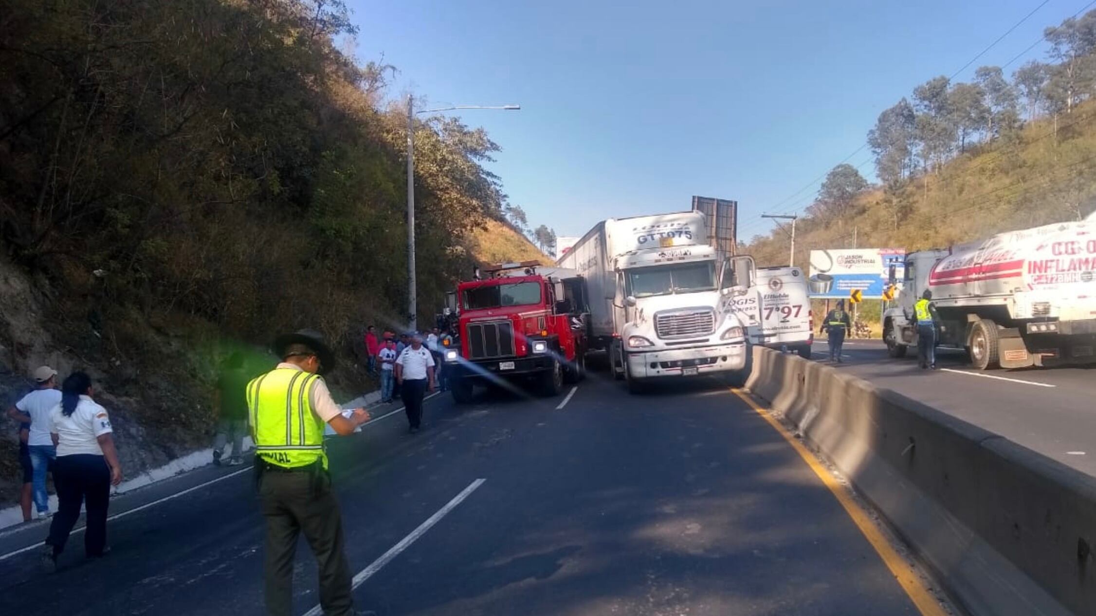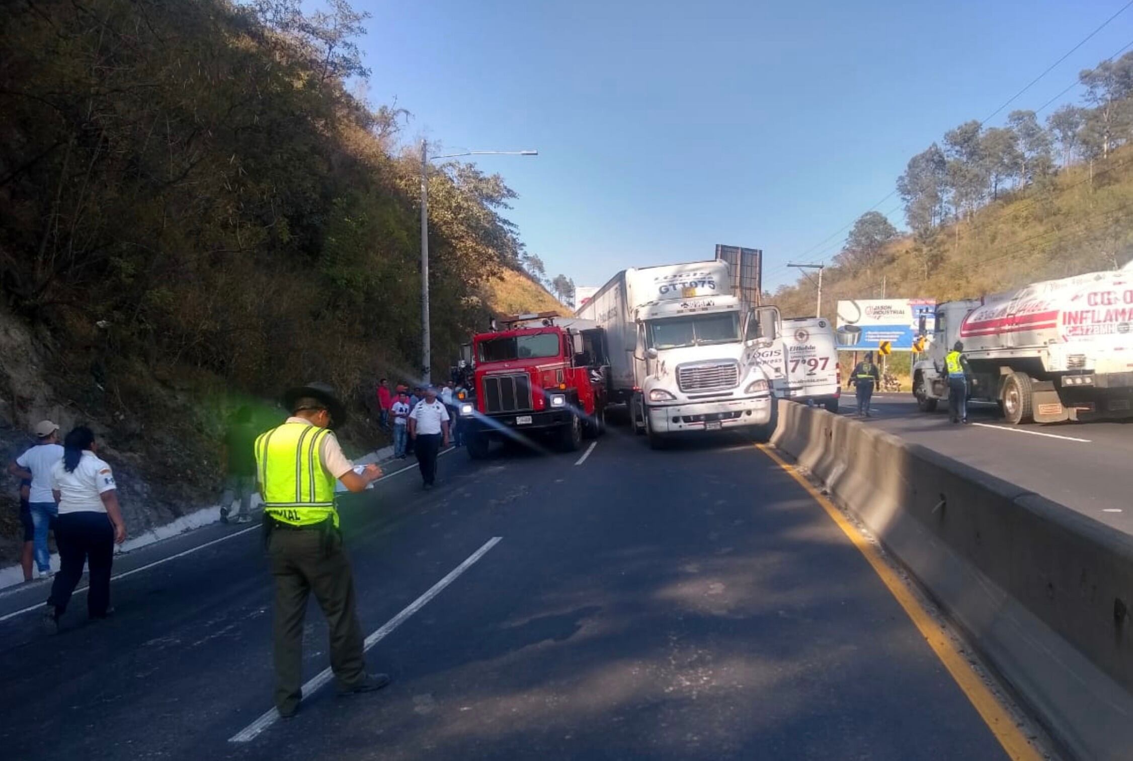 En el kilómetro 23.5 de la carretera al Pacífico en la vía hacia Amatitlán colisionó un autobús tipo pullman contra un tráiler.