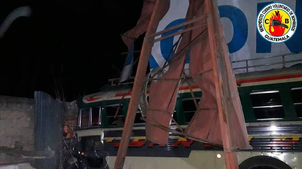 Los Bomberos Municipales Departamentales y Bomberos Voluntarios fueron alertados acerca de que un autobús colisionó contra una estructura publicitaria ubicada en el sector.