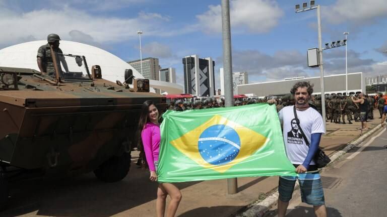 Ya desde este domingo, decenas de brasileños -en su mayoría blancos y de clase acomodada- se aglomeraron alrededor de la Explanada de los Ministerios, donde se desarrollaba el ensayo general para la investidura del próximo martes.