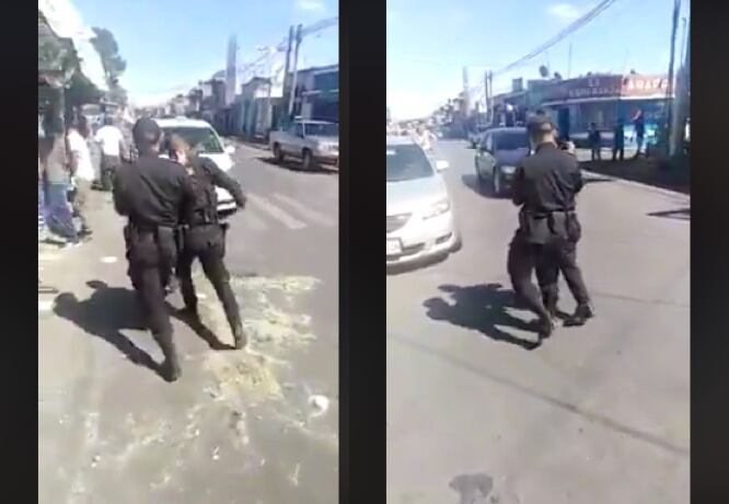 Según se ha conocido, las imágenes fueron grabadas en la colonia La Florida, zona 19 capitalina. Supuestamente los elementos policiales salían en ese momento de un negocio donde se venden bebidas alcohólicas.