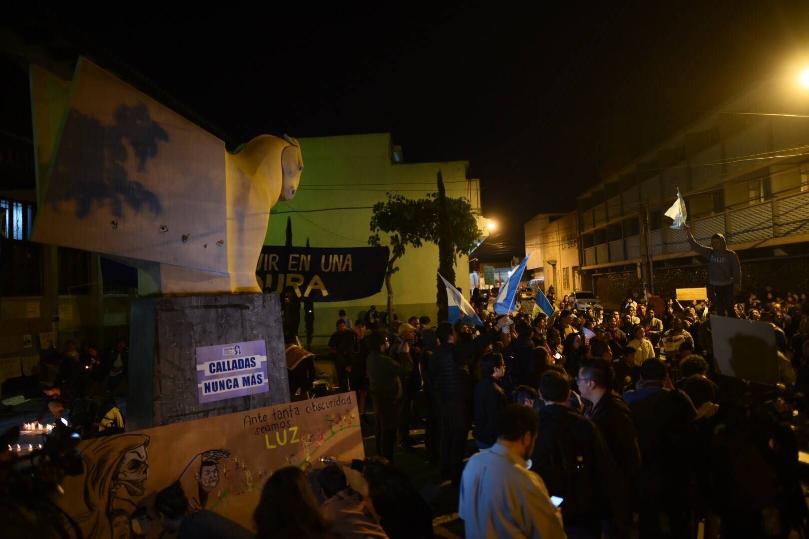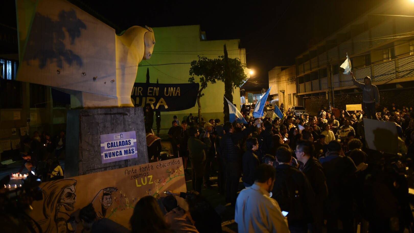 Al mismo tiempo de que el personal de la CICIG salía del país, en las afueras de la Corte de Constitucionalidad (CC) un grupo de ciudadanos se reunió para mostrarle su respaldo a los cuatro magistrados, quienes han frenado las decisiones del presidente.