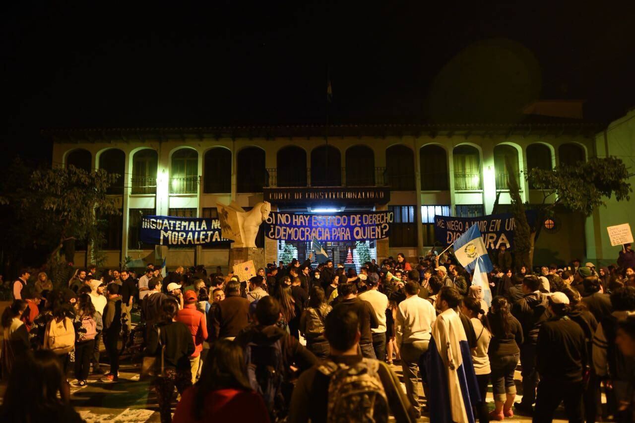 Decenas de guatemaltecos se han reunido frente a la Corte de Constitucionalidad la noche de este martes 8 de enero para manifestarse en contra de la decisión del presidente Jimmy Morales de cancelar el acuerdo entre el Gobierno y la Organización de las Naciones Unidas sobre el establecimiento de la Comisión Internacional Contra la Impunidad en Guatemala (CICIG).