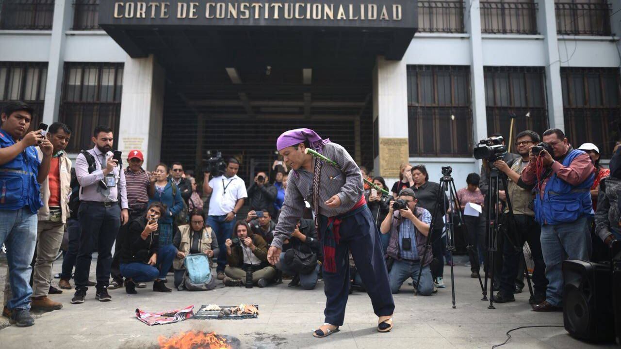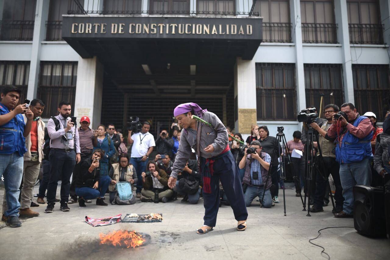 Frente a la sede del máximo tribunal se realizó también una ceremonia maya para “cicatrizar” el caos provocado por el Gobierno.