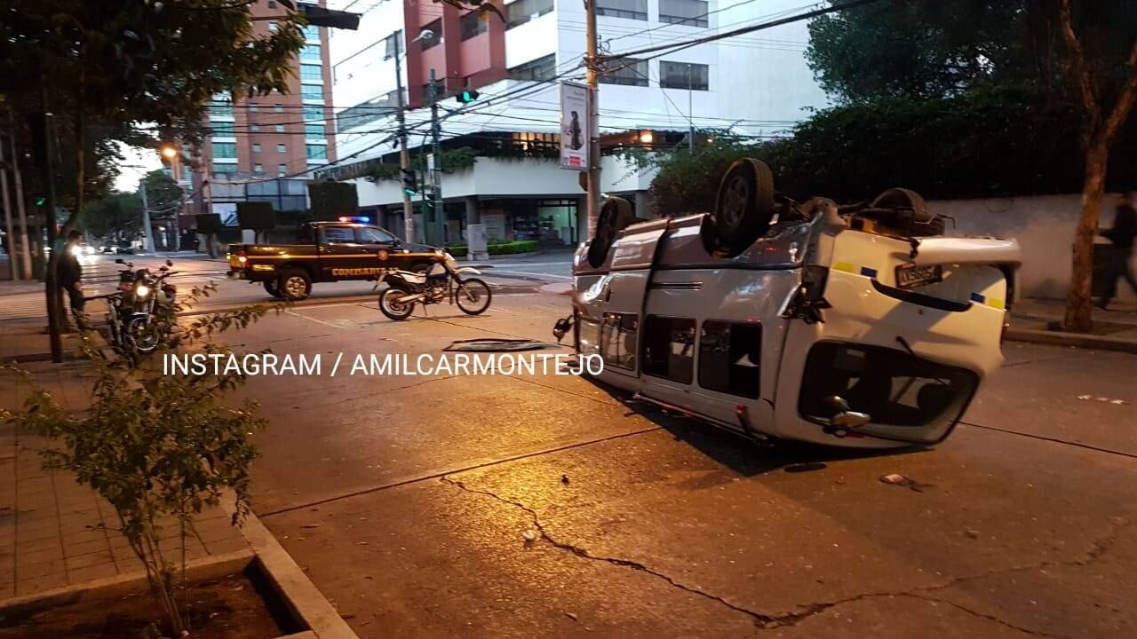 Un accidente de tránsito se registró en horas de la madrugada de este viernes en la 4ª avenida y 15 calle de la zona 10 capitalina. Como resultado quedaron ocho personas heridas.