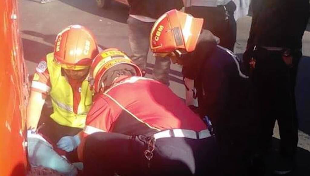 Usuarios del transporte urbano y peatones, alertaron a los Bomberos Municipales, quienes se presentaron al lugar y utilizaron técnicas de rescate para atender a la víctima.