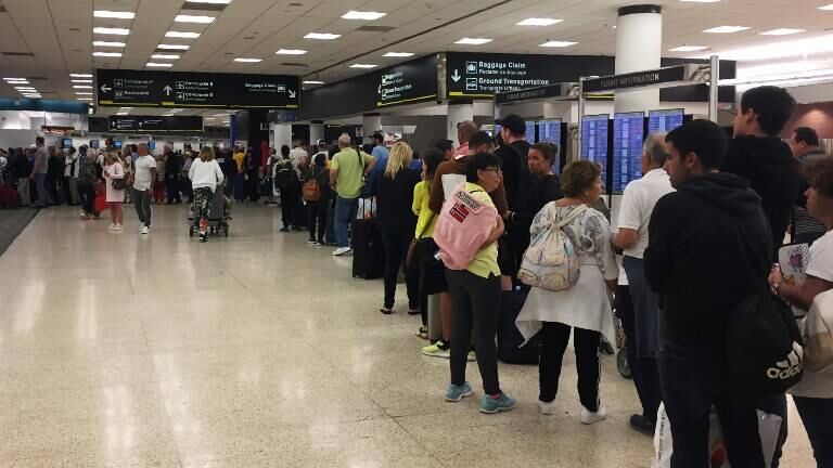 "Podríamos hasta perder el avión. Quería comerme un sándwich y ahora no puedo. Estamos furiosos, no tiene sentido", dijo a la AFP el italiano Rocco Vincenzo, que se dirigía a las islas Caimán antes de volver a su país pero estaba bloqueado en una fila de más de 100 metros.