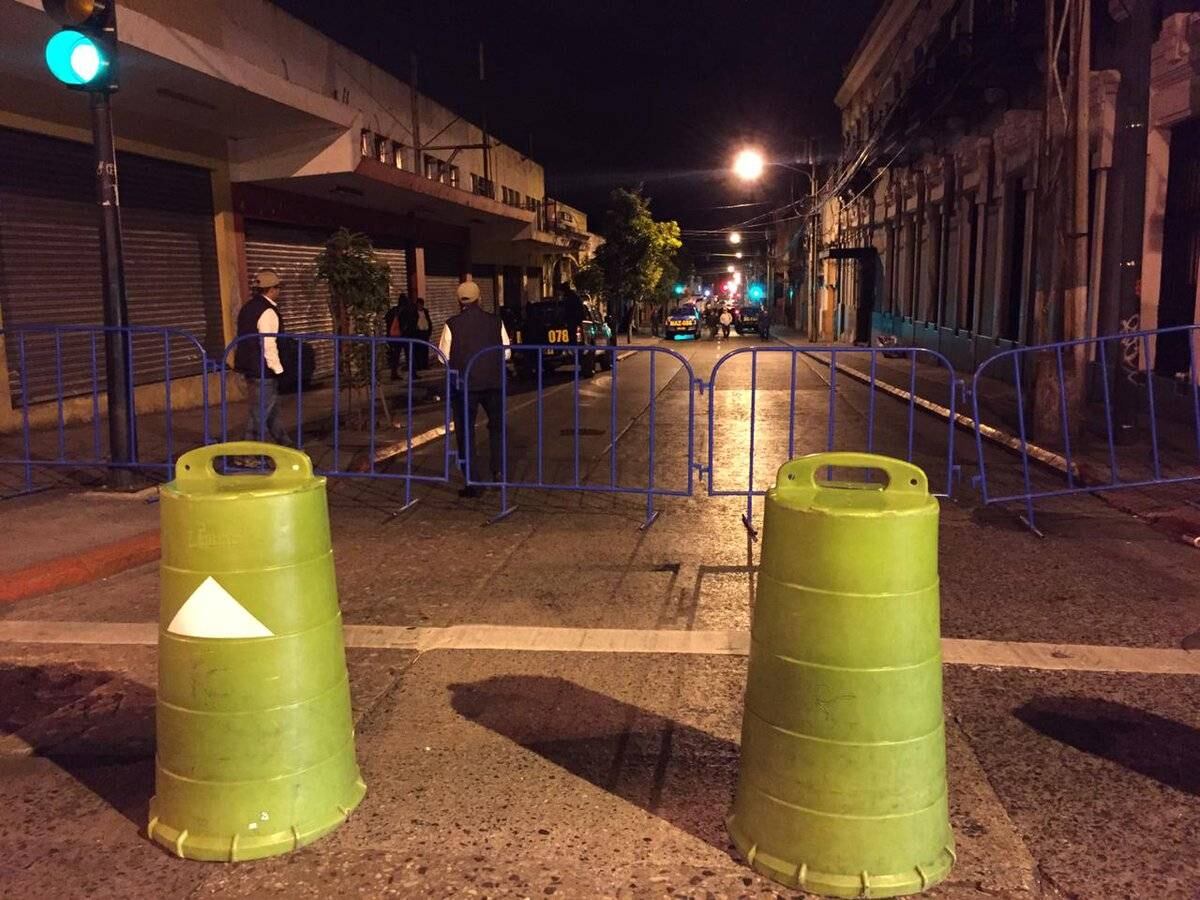 Como medida de prevención ante la presencia de manifestantes, personal de la Secretaría de Asuntos Administrativos y de Seguridad de la Presidencia (SAAS) cerró el paso en los siguientes tramos de la zona 1: