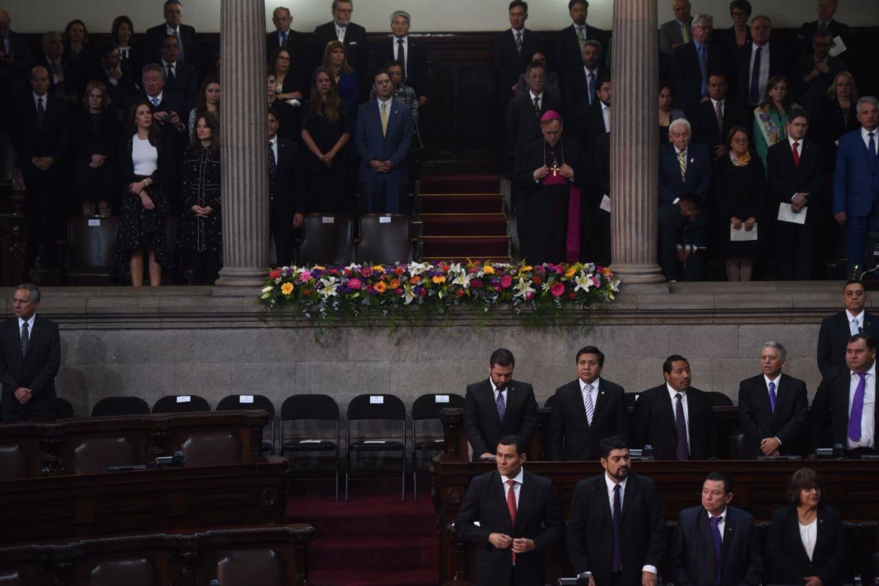 Por aparte, las bancadas Unidad Revolucionaria Nacional Guatemalteca (URNG-Maíz) y Winaq, aseguraron que permanecerían en el pleno mientras se juramentaba y tomaba posesión la junta directiva, pero se retirarían cuando se presentara el informe de gobierno.