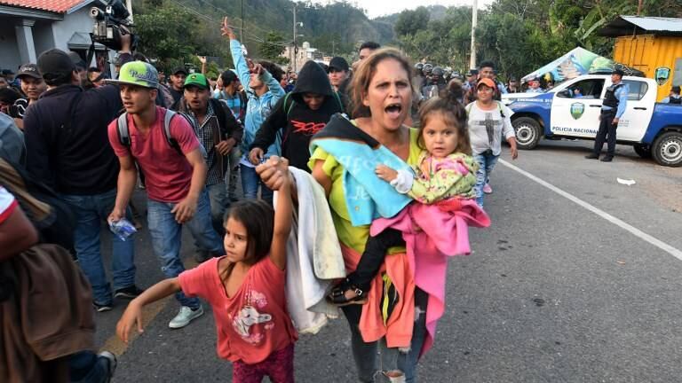 Esta nueva caravana, que empezó a salir por grupos la noche del lunes de San Pedro Sula, consiguió romper este martes un cerco policial en la frontera de Honduras con Guatemala, pero por la tarde no quedaba claro si podrían continuar su camino pues se encontraron con un cordón de policías guatemaltecos, constató la AFP en el sitio.