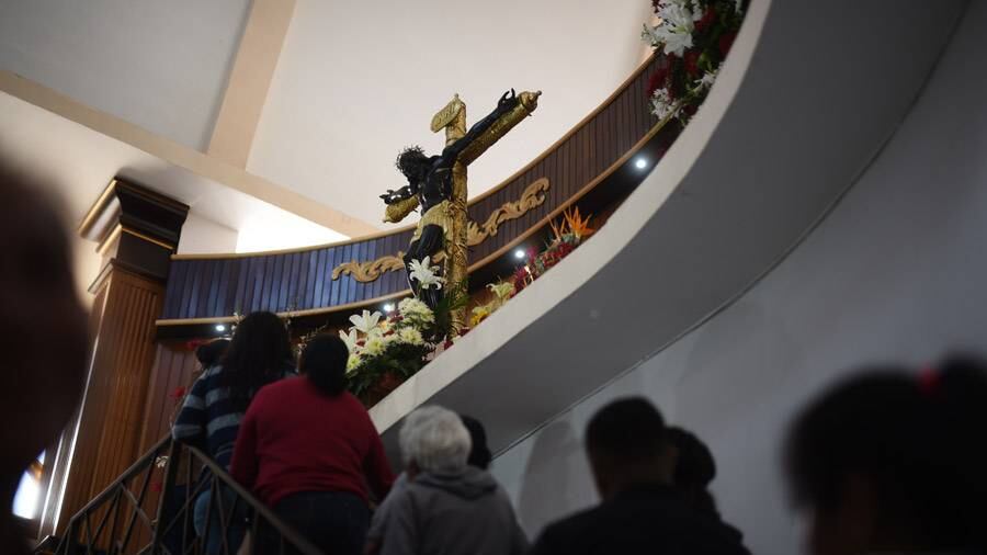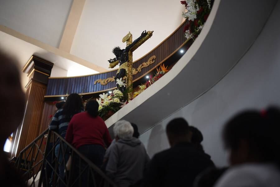 Mientras las familias llegan a visitar al Cristo Negro de la Parroquia Nuestro Señor Jesucristo Crucificado de Esquipulas, en la zona 11, Lesbia de Barrientos llega sola y espera reunirse con su comadre para poder escuchar la misa solemne y agradecer los milagros que ha recibido junto con su familia.