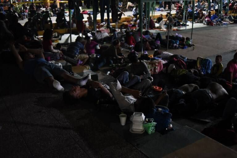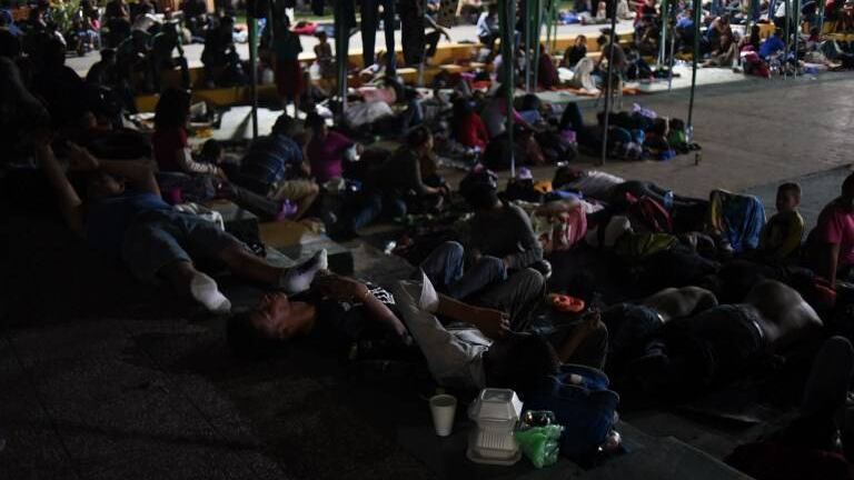 La mayoría pernocta en el cemento del parque de la ciudad de Tecún Umán, fronteriza con México, aguardando la luz de día para emprender el camino que los lleve hasta la frontera sur de Estados Unidos.