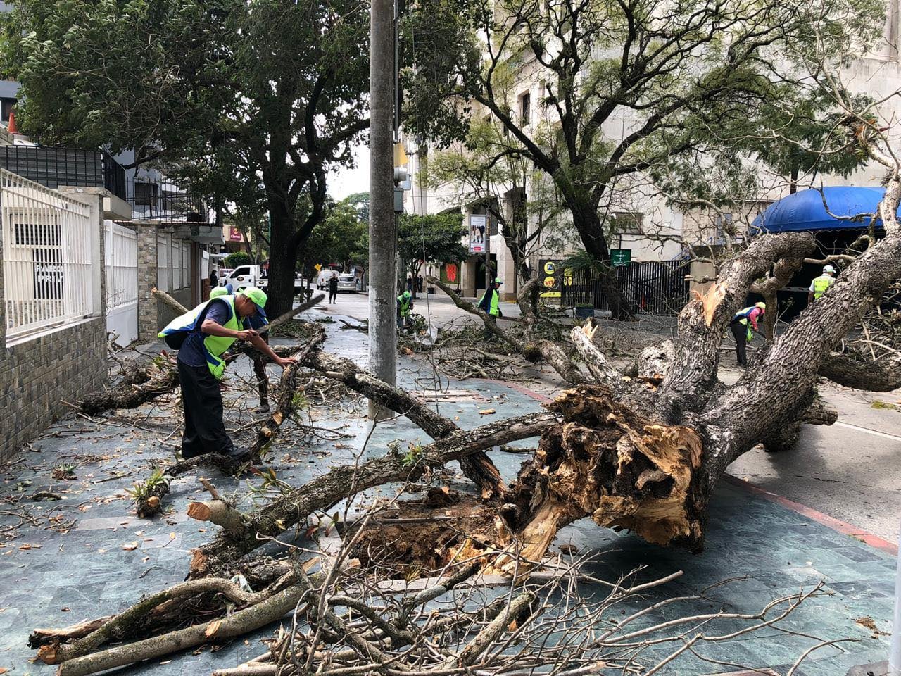Los cuerpos de socorro solicitan precaución debido a los fuertes vientos, los cuales han derribado al menos tres árboles de grandes proporciones y vallas publicitarias, hasta el momento únicamente se reportan dos personas heridas.