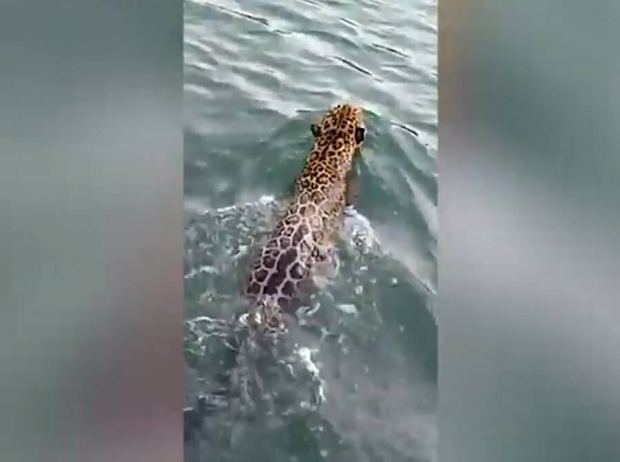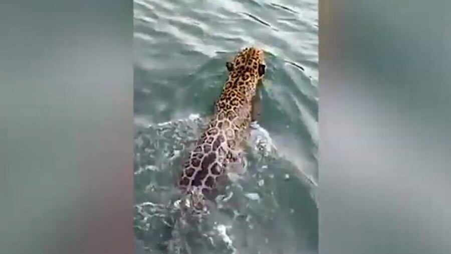El Instituto Guatemalteco de Turismo (Inguat) publicó un video en el que se observa a un gran jaguar nadando muy cerca a una lancha.