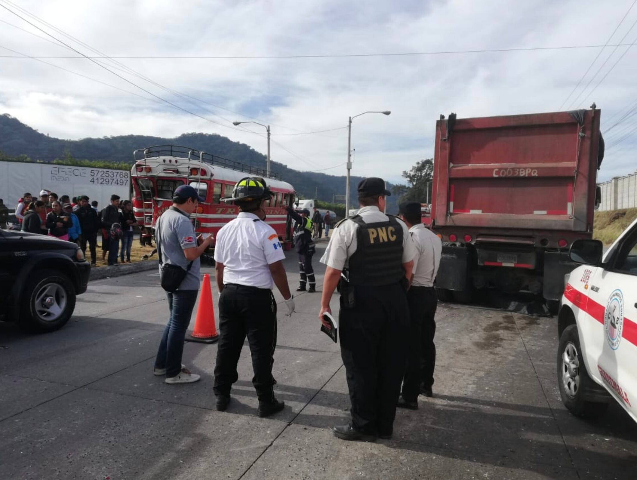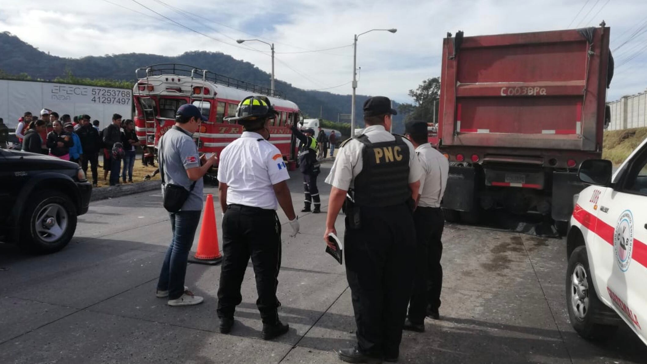 Una versión que investiga las autoridades es que el camión chocó por detrás la unidad del transporte colectivo.
