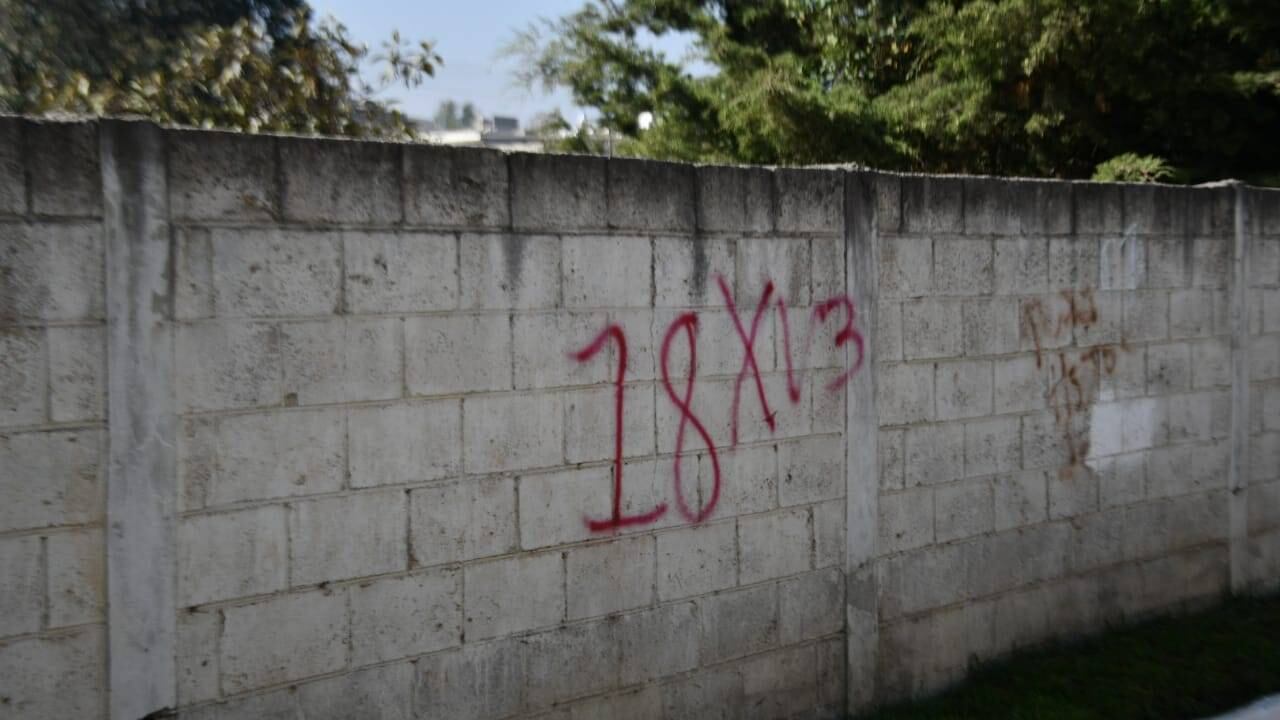 Puertas y paredes de algunos inmuebles en la colonia Las Bugambilias amanecieron con pintas que identifican al Barrio 18.