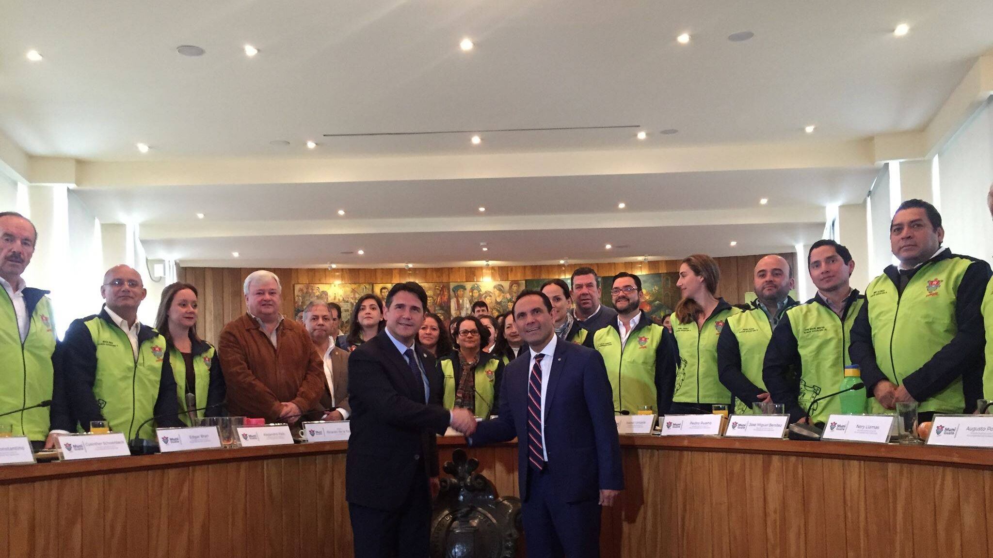 Ricardo Quiñónez, alcalde de Guatemala junto con Murphy Paiz, rector de la Universidad de San Carlos firmaron el convenio para la elaboración del proyecto Colector Bosques Las Ardillas, el cual busca mejorar el medio ambiente en el sector de la zona 12.