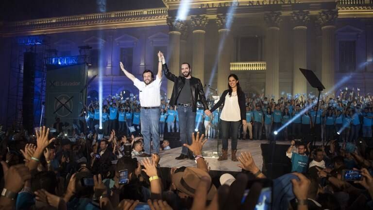 “Aquí estamos a punto de hacer historia, vamos a romper el bipartidismo que ha prevalecido en este país desde hace mucho”, dijo Bukele ante la multitud reunida en la denominada Plaza Gerardo Barrios, ubicada en pleno corazón de San Salvador.