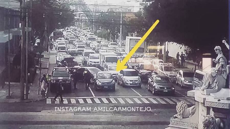 En la zona 10 también ocurrió algo similar, aunque el conductor de este caso inclusive dejó las puertas abiertas del carro.
