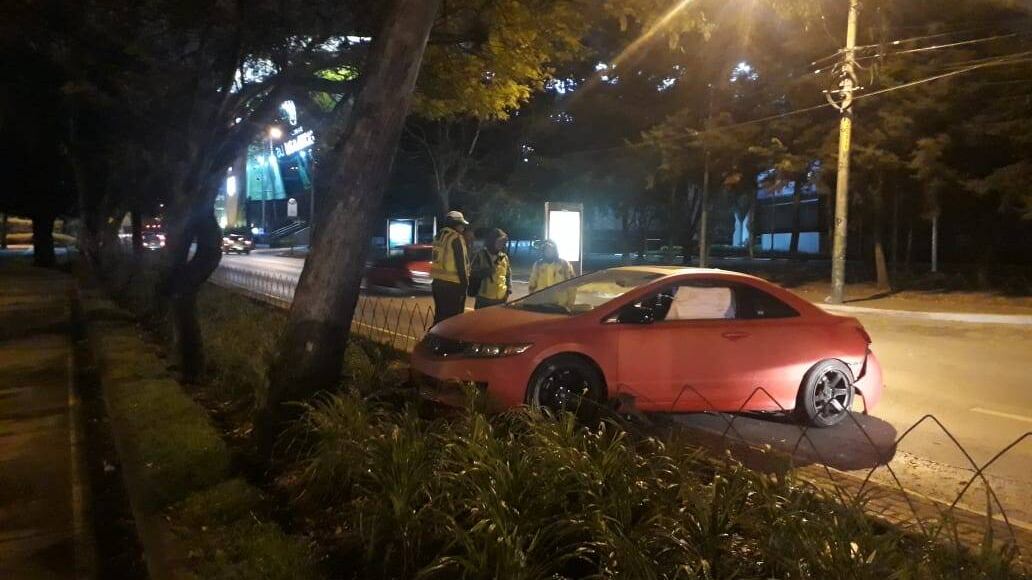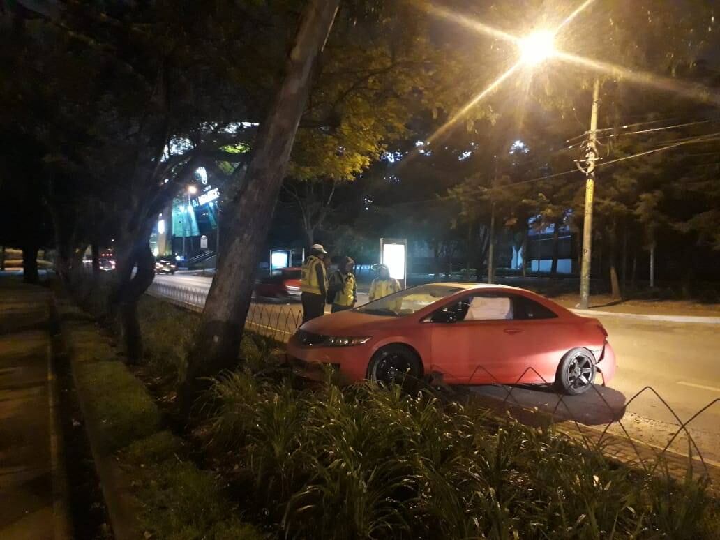 Otro percance se registró en la avenida Las Américas y 6ª calle de la zona 14, en donde el conductor de un vehículo perdió el control de este y se empotró en el arriate central.