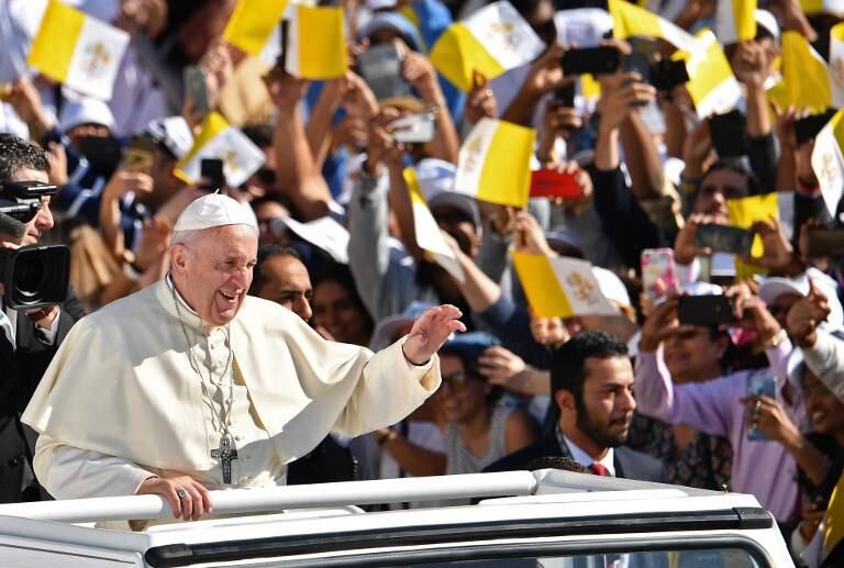 Un inmenso clamor se elevó en el estadio Zayed Sports City, el más grande de Emiratos Árabes Unidos, cuando llegó el papa Francisco.