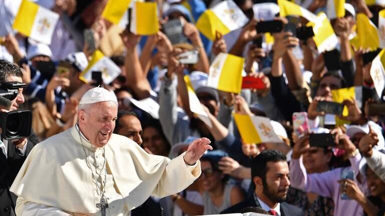 Un inmenso clamor se elevó en el estadio Zayed Sports City, el más grande de Emiratos Árabes Unidos, cuando llegó el papa Francisco.