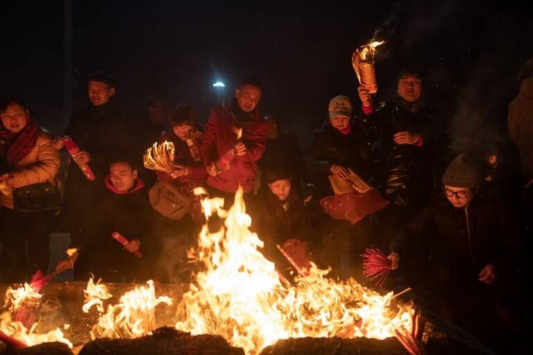 Miles de chinos acudieron este sábado a un templo del centro del país para rendir homenaje al Dios de la Riqueza, coincidiendo con la celebración del Año del Cerdo, un animal que según la tradición trae prosperidad.