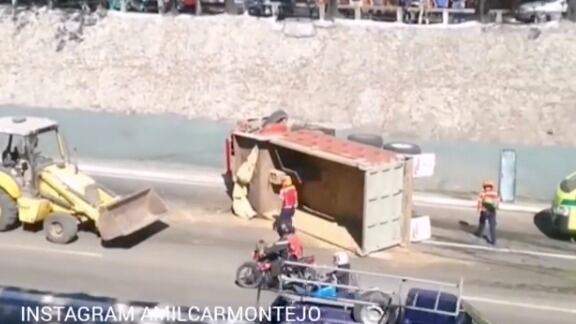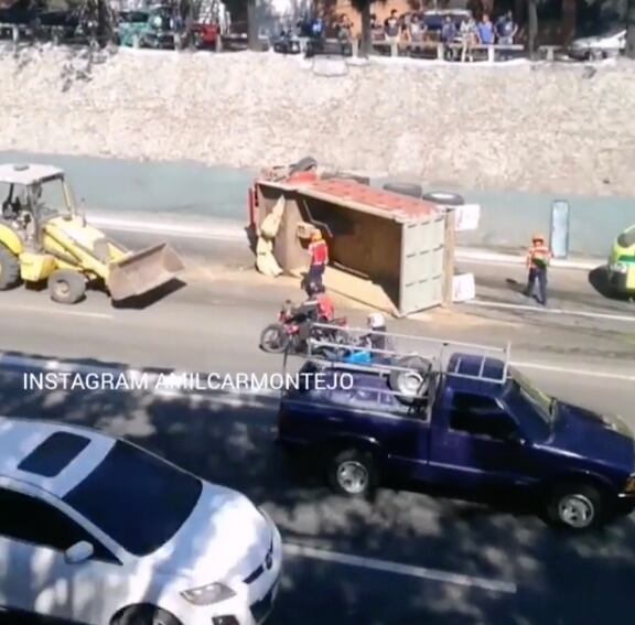 El vehículo de carga permanece en la ruta hacia sur; sin embargo, en ambos sentidos el tránsito es totalmente lento, pues maquinaria pesada lleva a cabo las acciones para poder retirarlo.