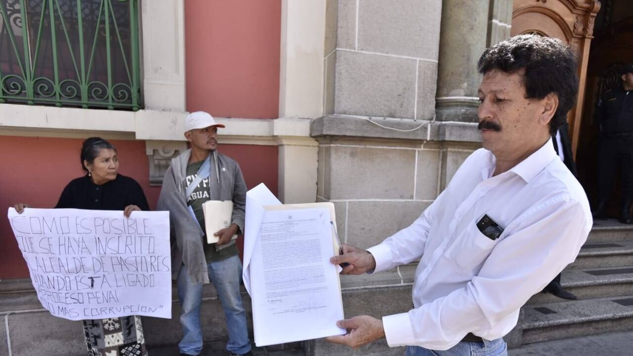 Un grupo de pobladores de Pastores en Sacatepéquez, se manifestaron en las afueras del TSE y pidieron revocar la inscripción del alcalde, Miguel Antonio López Barahona.