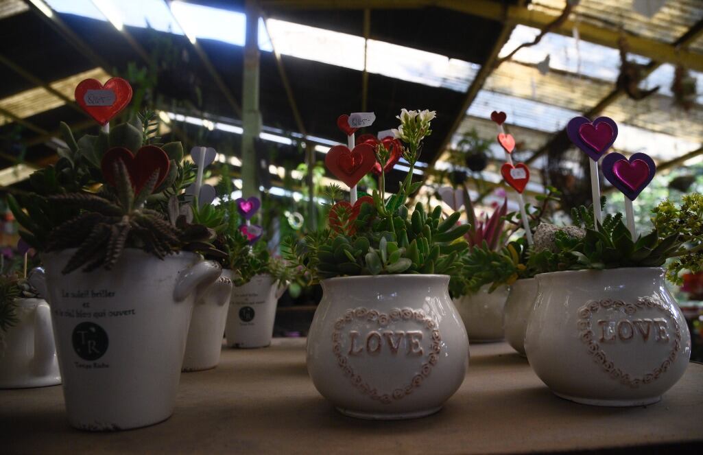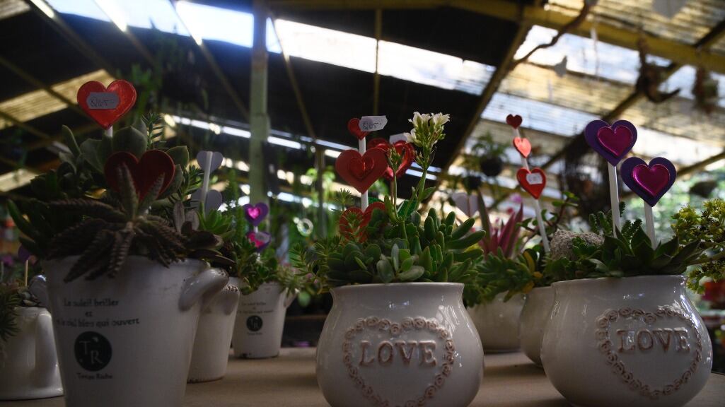 Sin embargo, también se tiene variedad de productos listos para comercializarlos, entre ellos, los terrarios elaborados con troncos, los cuales contienen diferentes especies de suculentas y con el respectivo toque del Día de San Valentín, o Día del Cariño. Estos oscilan entre los Q85 y Q200.