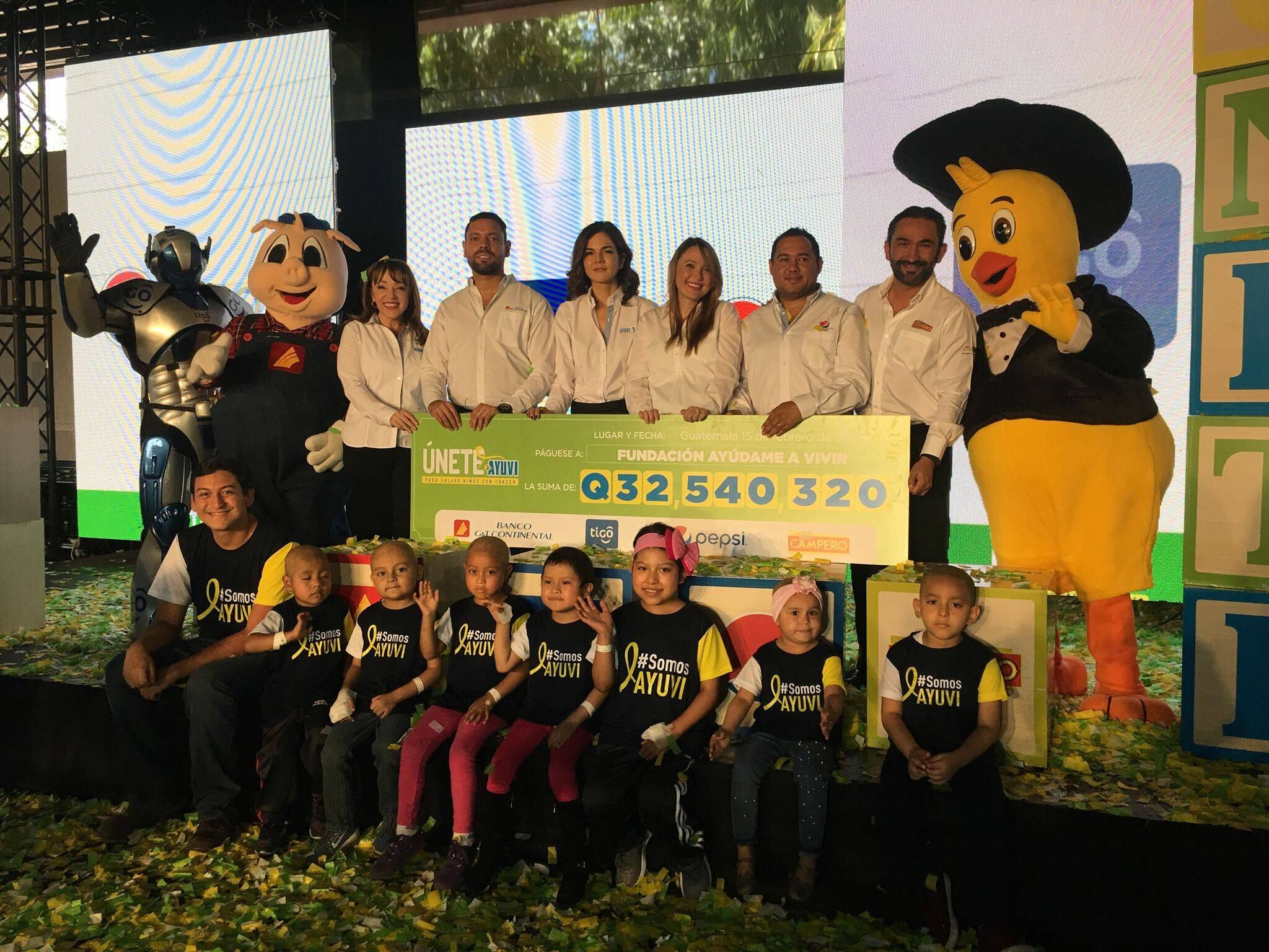 Como ya es tradición, cada año se revela el monto de los fondos que fueron recaudados en la Gran Rifa Únete, que nació con el objetivo de apoyar la labor de la Fundación Ayúdame a Vivir (Ayuvi). Los representantes de las cuatro empresas socias: Pollo Campero, Pepsi, Banco G&T Continental y Tigo se reunieron para hacer entrega oficial del donativo.