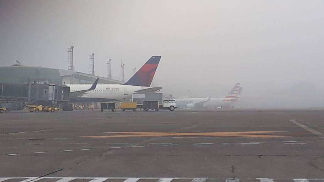 Las operaciones en el Aeropuerto Internacional La Aurora fueron suspendidas temporalmente este lunes debido a la presencia de neblina en el sector.