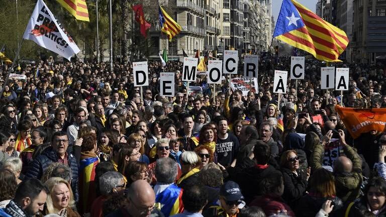 El sábado, alrededor de 200 mil personas marcharon por el centro de Barcelona tras la pancarta "La autodeterminación no es delito", sostenida, entre otros, por el presidente regional, Quim Torra.