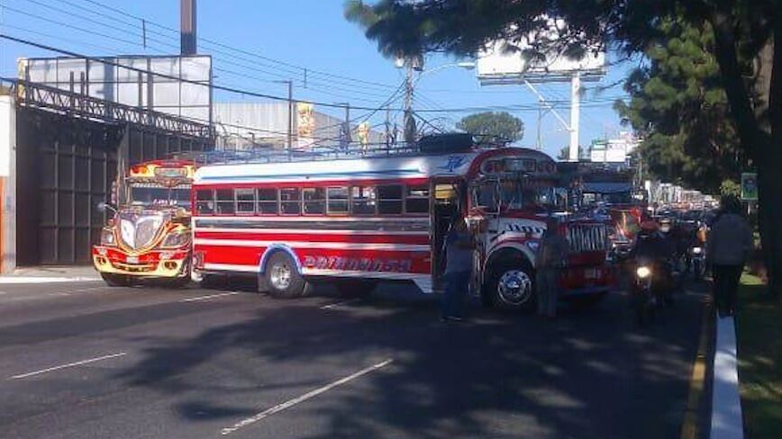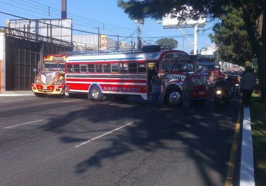 El paso por la calzada Roosevelt se encuentra completamente cerrado este martes, ya que pilotos de autobuses extraurbanos realizan un bloqueo.