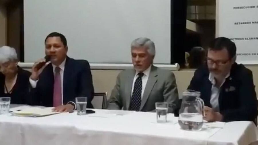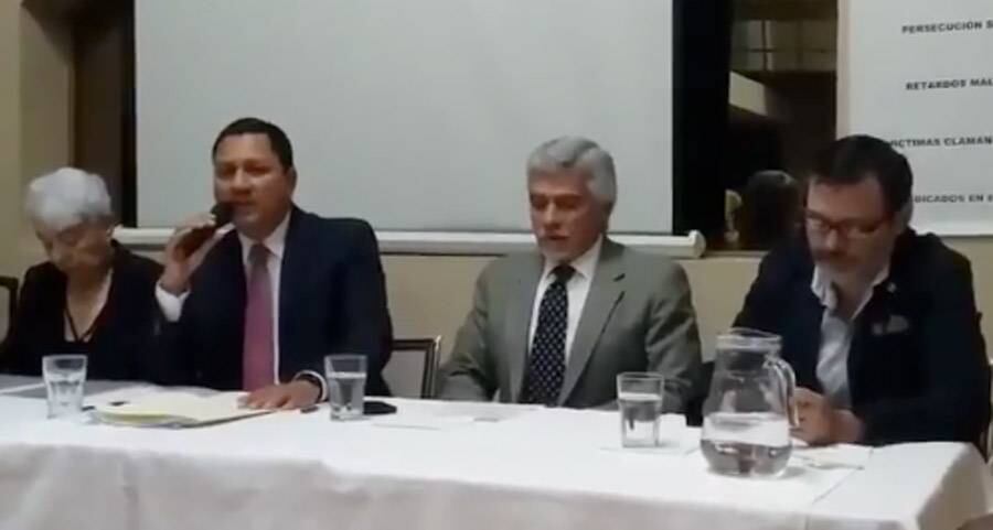 La mesa estaba integrada por el abogado Raúl Falla, Carlota Torres Ocampo, de la Liga Propatria; Ricardo Méndez Ruíz, de la Fundación Contra el Terrorismo; y Giovanni Fratti de Guatemala Inmortal.